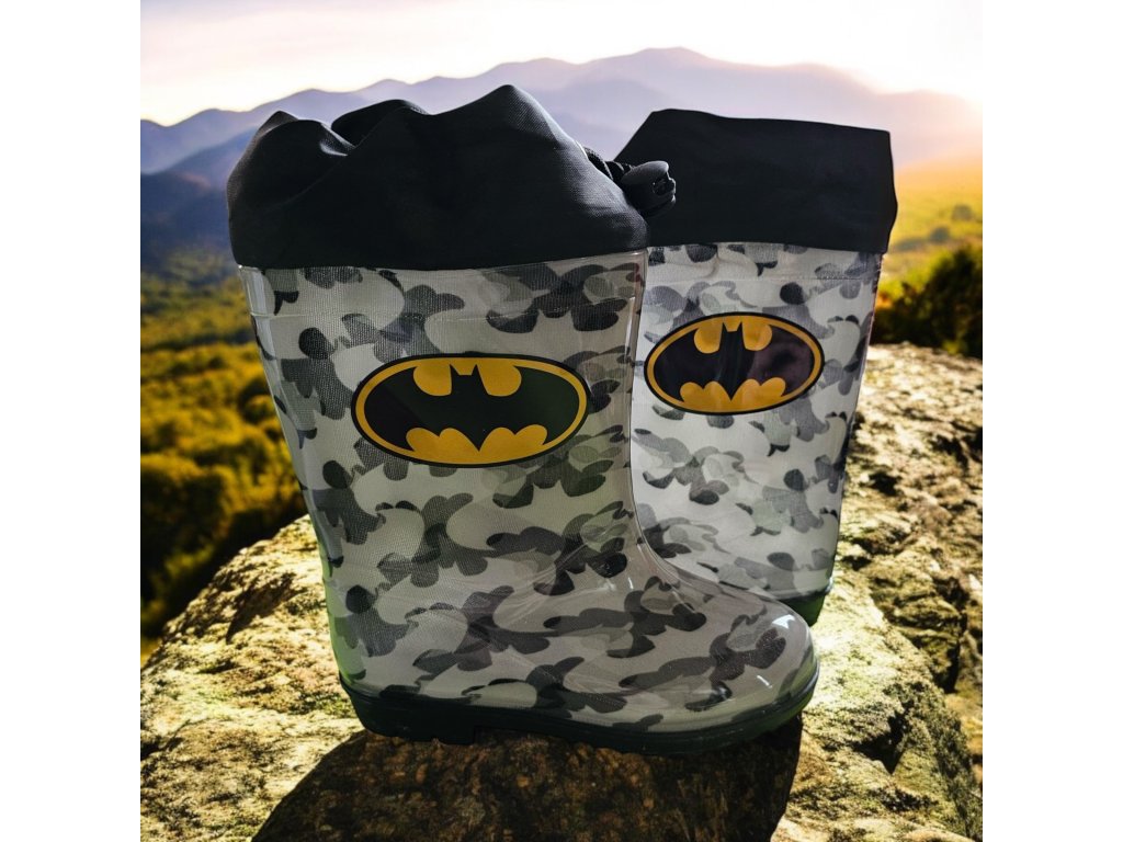 Pro malé superhrdiny jsou tu šedé holínky s motivem Batmana! Maskáčový design dodává botám moderní vzhled a černý lem chrání před vniknutím vody.