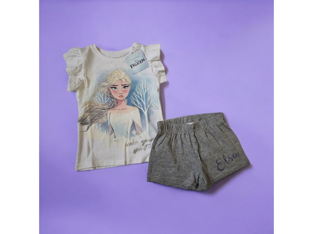 • Šedé kraťasy – Pohodlný střih s elastickým pasem, decentní vyšitý nápis „Elsa“ na nohavici. Perfektně ladí s tričkem a poskytují maximální komfort při nošení.