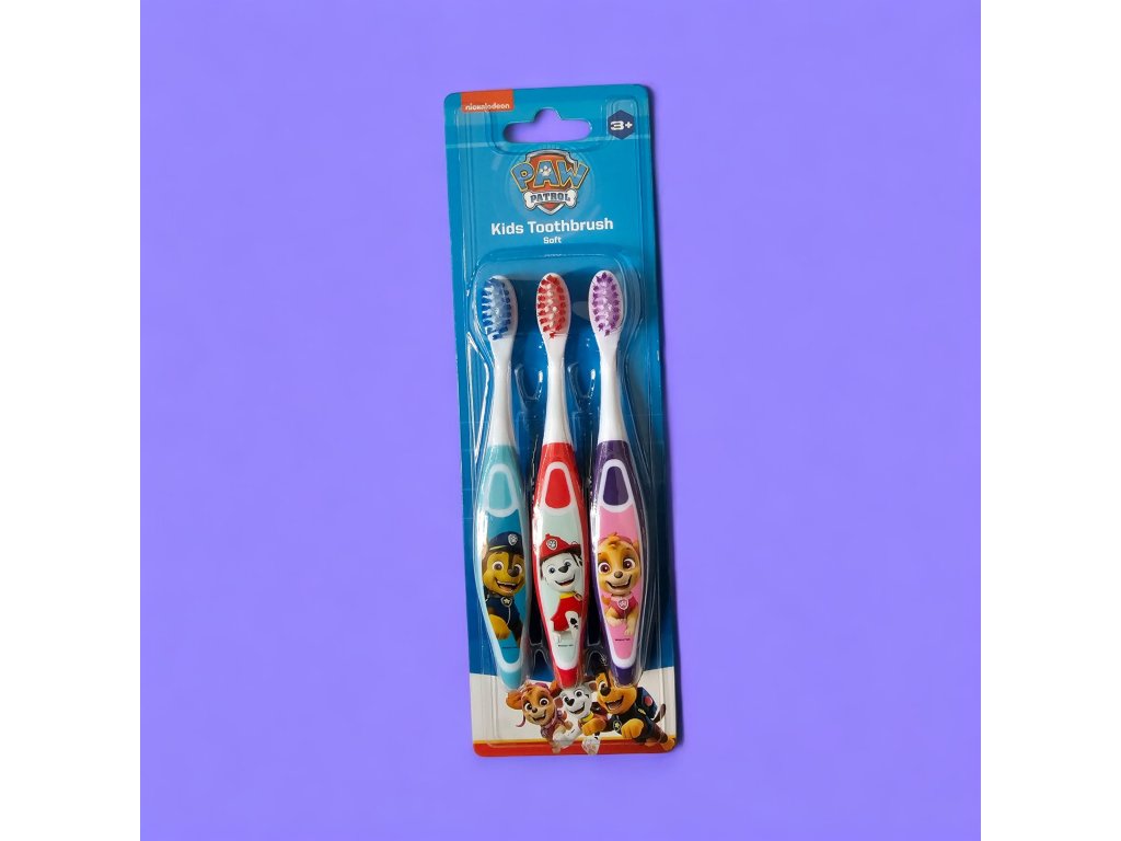 Zábavná sada zubních kartáčků s motivem Tlapkové Patroly podporuje děti v pravidelném čištění zubů. Měkké štětiny chrání dásně a ergonomická rukojeť umožňuje pohodlný úchop. Sada obsahuje 3 kartáčky, takže vystačí na delší dobu.