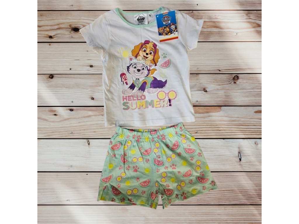 Hledáte pohodlné a stylové dětské pyžamo na léto? Tento roztomilý letní set s motivem Tlapková patrola (Paw Patrol) je ideální volbou pro všechny malé fanoušky oblíbené televizní party hrdinských štěňátek! Set se skládá z trička s krátkým rukávem a šortek, což zajišťuje maximální komfort během teplých letních dnů i nocí.