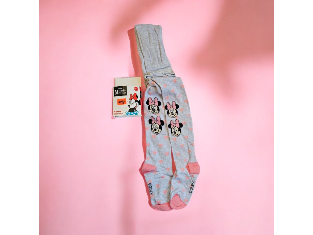 Dětské punčocháče s motivem oblíbené Disney postavičky Minnie Mouse. Díky příjemnému a elastickému materiálu jsou pohodlné na nošení a skvěle se přizpůsobí dětské nožce. Světle šedá barva s roztomilým potiskem potěší každou malou princeznu. Ideální volba pro běžné nošení i chladnější dny.